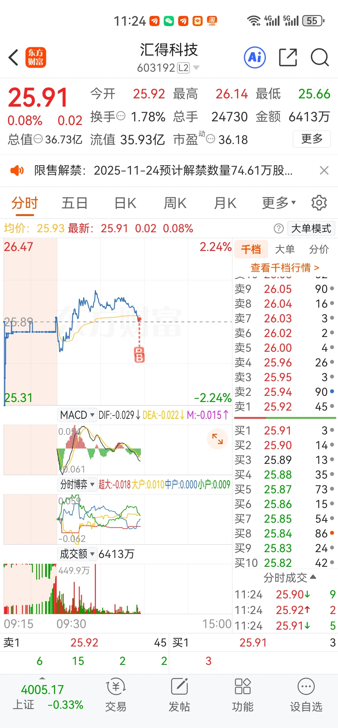 $汇得科技(SH603192)$ 刚来打卡帮大家顶一顶别绿了