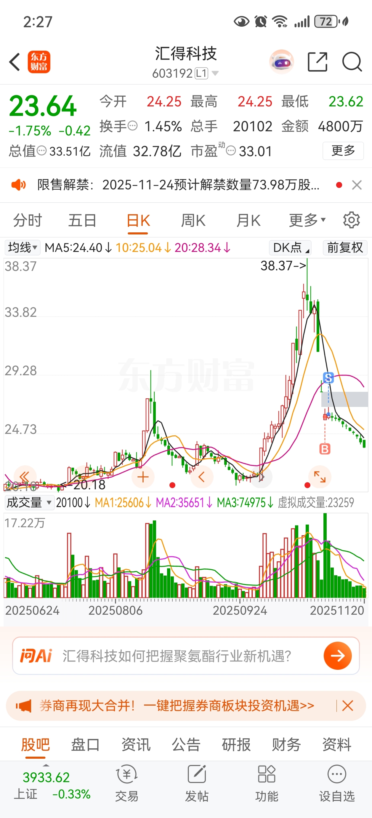 $汇得科技(SH603192)$ 这个票真是无语,幸亏跑得快