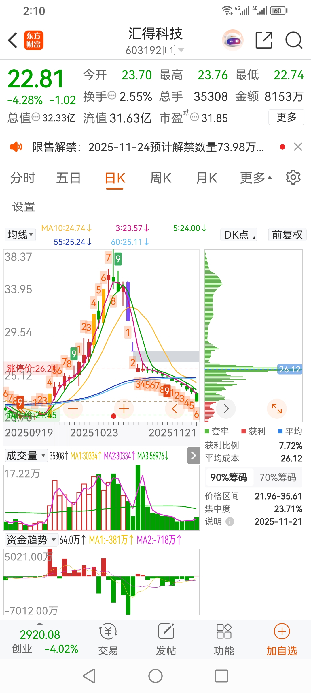方军上海化工汇得科技,关注,分析,下跌,均线。