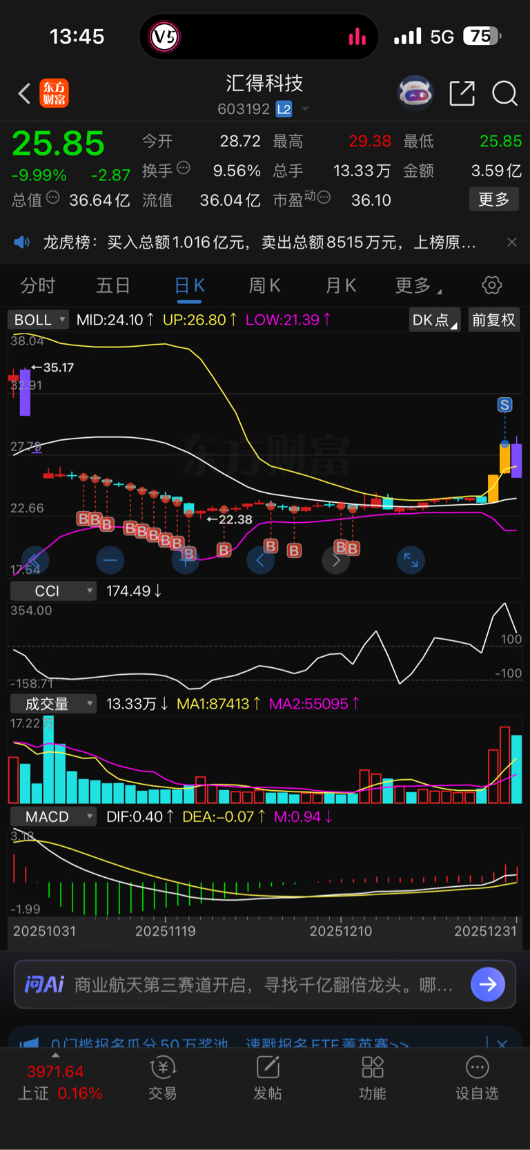 $汇得科技(SH603192)$ 还好跑的快