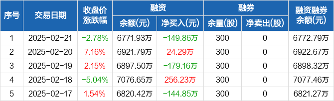 润本股份:融资净偿还149.86万元,融资余额6771.93万元(02-21)
