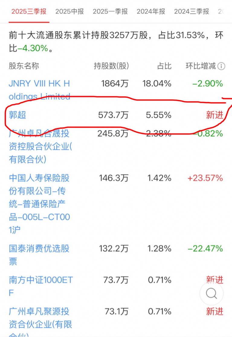 $润本股份(SH603193)$ 郭超是哪位大佬,买了一个多亿,有实力