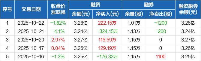 润本股份:融资净买入222.15万元,融资余额3.26亿元(10-22)
