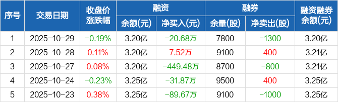 润本股份:融资净偿还20.68万元,融资余额3.2亿元(10-29)