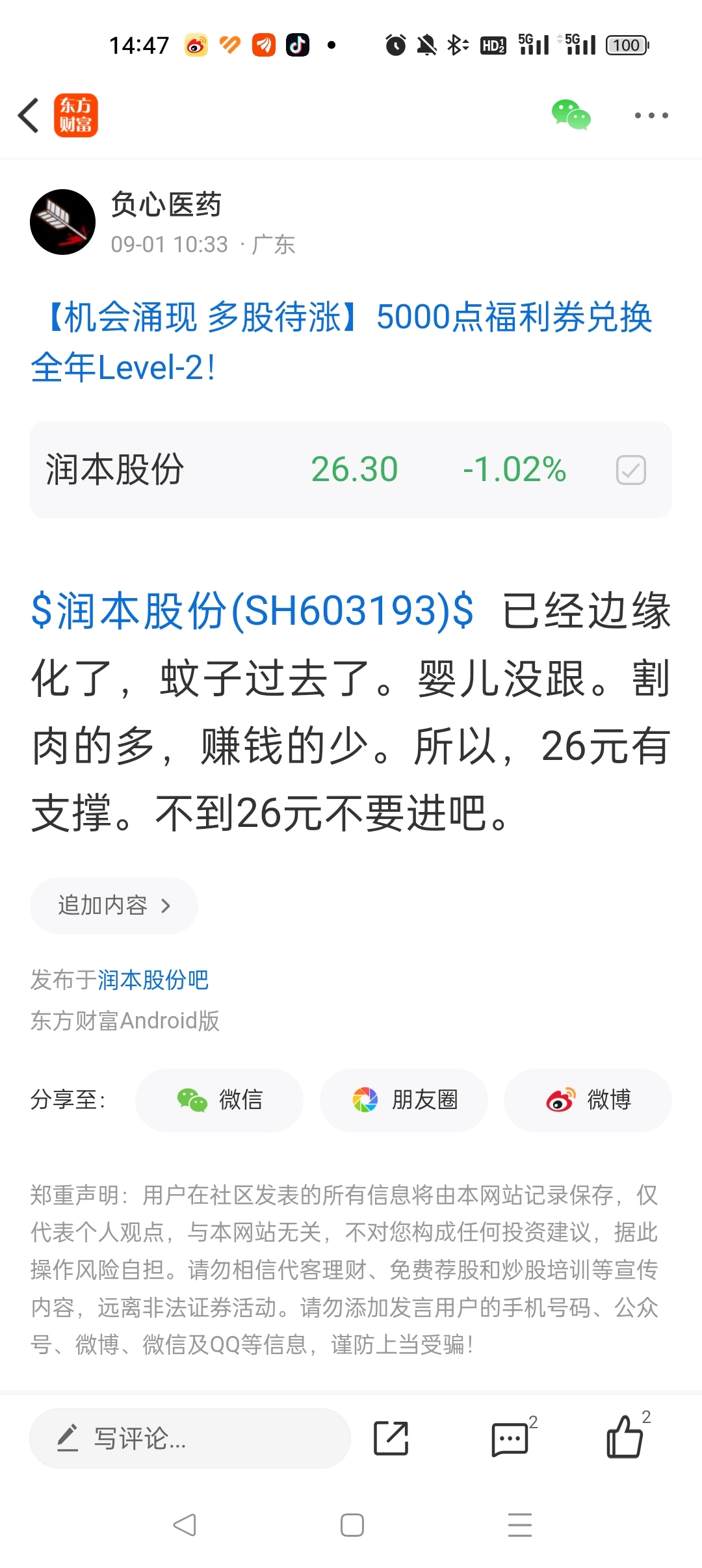 温馨提示: 1.根据《证券法》规定,禁止编造、传播虚假信息或者误导性信息,扰乱证券市场;2.用户在本社区发表的所有资料、言论等仅代表个人观点,与本网站立场无关,不对您构成任何投资建议。用户应基于自己的独立判断,自行决定证券投资并承担相应风险。《东方财富社区管理规定》