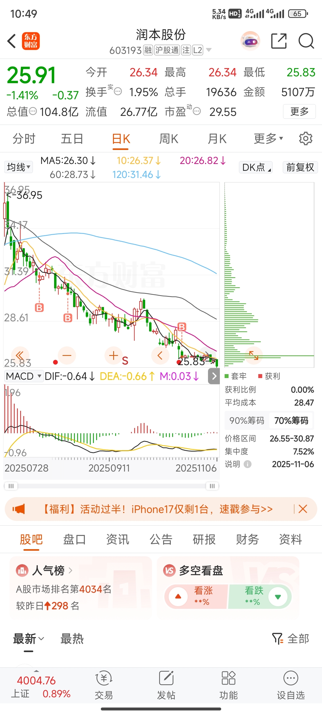 $润本股份(SH603193)$ 大哥 手下留情啊,真的一点都没了