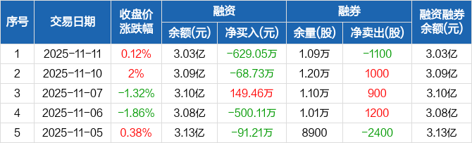 润本股份:融资净偿还629.05万元,融资余额3.03亿元(11-11)