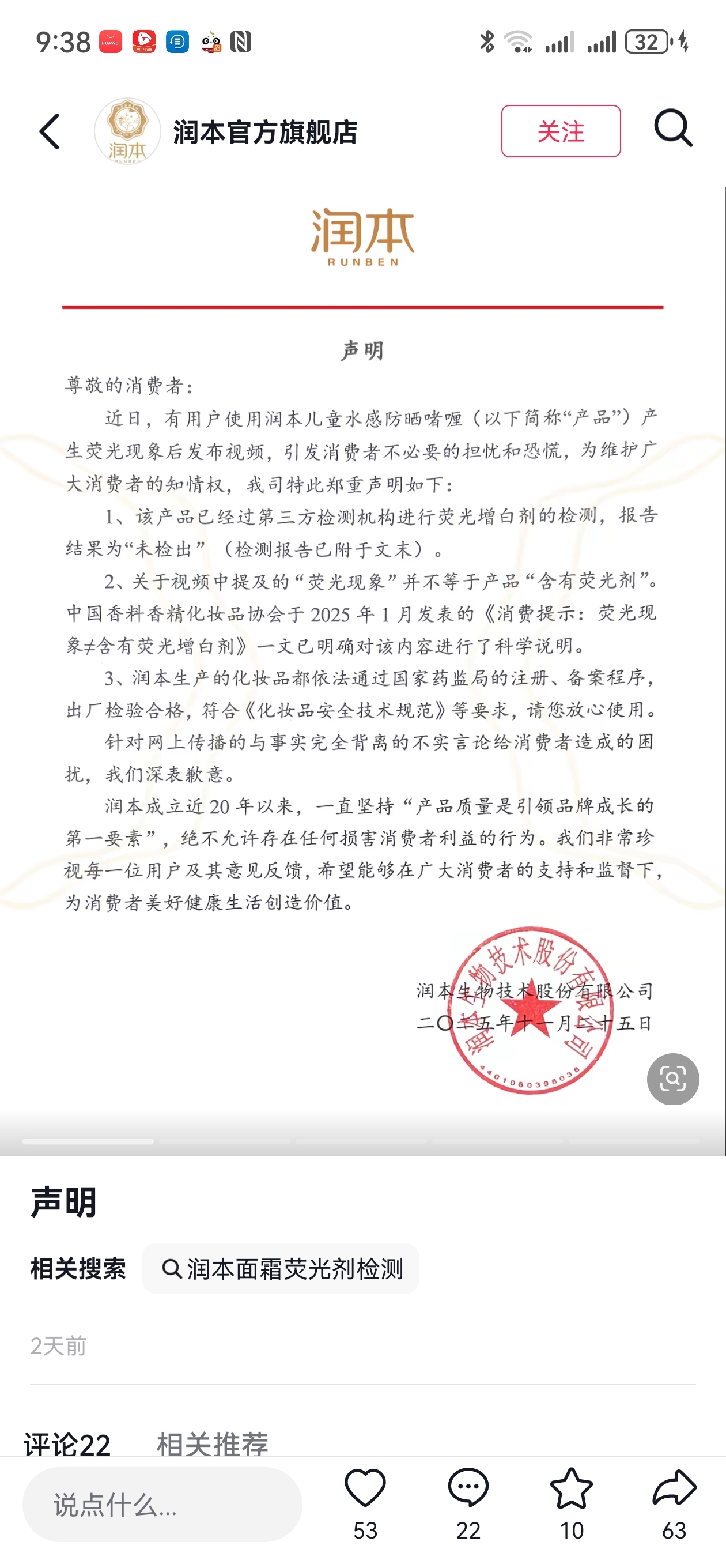 $润本股份(SH603193)$ 荧光剂事件已澄清
