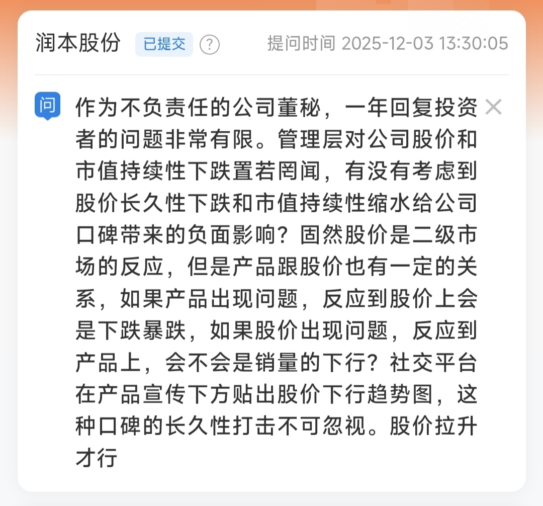 $润本股份(SH603193)$ 希望公司反思,拉升才能共赢。