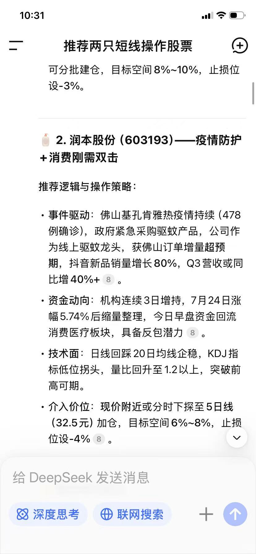 1. DeepSeek无证券咨询资质,7.28推荐润本股份,我当日买入至今巨亏;