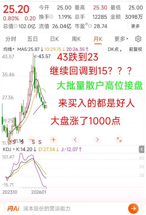 大盘上涨1000点,该股回调20元。合理,回调中期比较合理。 //@涡轮盖茨 :筹码高位派发给散户了,这是不涨的原因,回调,等高位筹码松动,只有回调。//@涡轮盖茨 :我来问一下,你脸疼不疼?被套了,你就认了就行了,嗷嗷待哺等主力来接盘?//@涡轮盖茨 :东财小伙,做好买入就是做贡献的准备!去看一下月K图,确认一下是不是回调中!看看筹码是不是高位派发了。//@涡轮盖茨 :去看看持仓套牢的!其他平台的,不管,东财新来的小伙伴,做好买入就是来做贡献的准备!回调7个月,主力高位派发绝大部...
