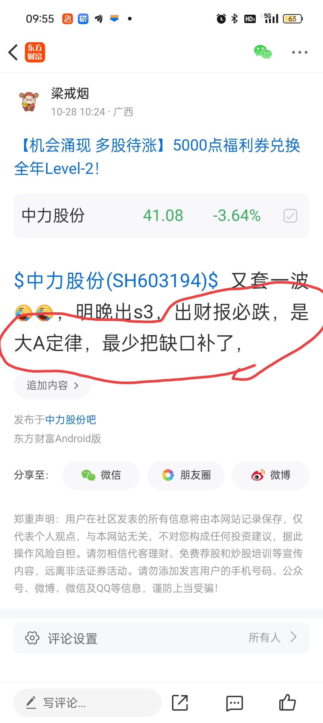 温馨提示: 1.根据《证券法》规定,禁止编造、传播虚假信息或者误导性信息,扰乱证券市场;2.用户在本社区发表的所有资料、言论等仅代表个人观点,与本网站立场无关,不对您构成任何投资建议。用户应基于自己的独立判断,自行决定证券投资并承担相应风险。《东方财富社区管理规定》