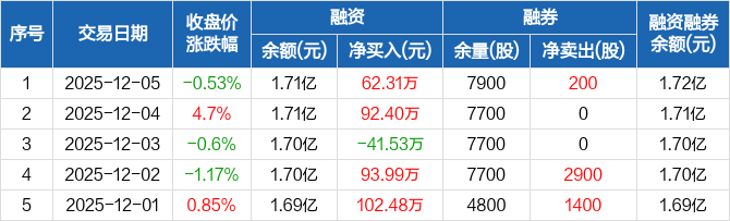 中力股份:融资净买入62.31万元,融资余额1.71亿元(12-05)