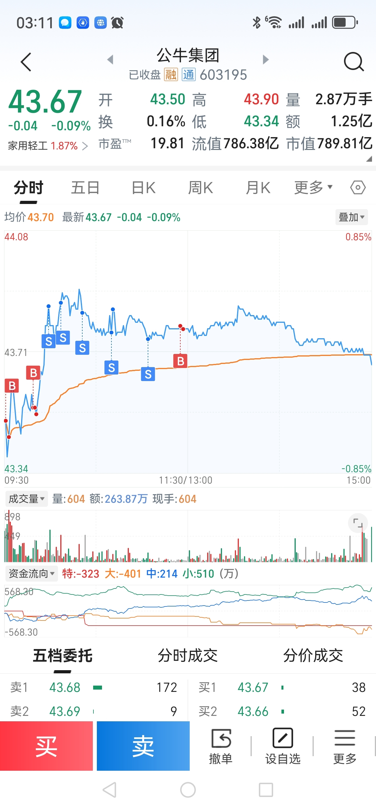 $公牛集团(SH603195)$ 四分钱玩一天,牛市不涨,今天大盘跌也相对安全。#复盘记录#