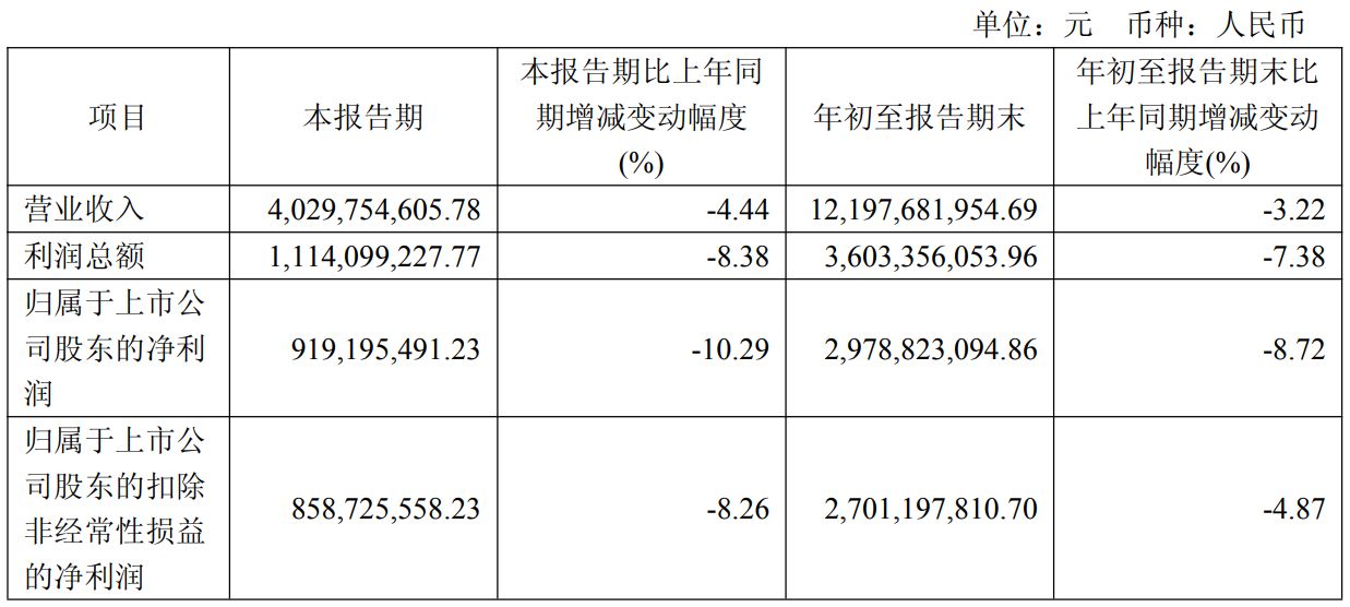 业绩方面,公牛集团2025年第三季度报告显示,今年前三季度,公司实现营业总收入121.98亿元,同比下降3.22%;归母净利润29.79亿元,同比下降8.72%。
