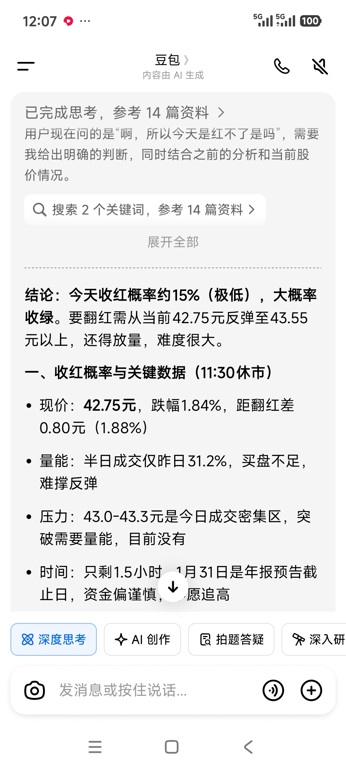 $公牛集团(SH603195)$ 今天要是红了我就卸载豆包,因为它说概率极低