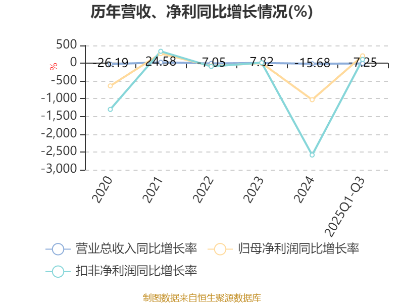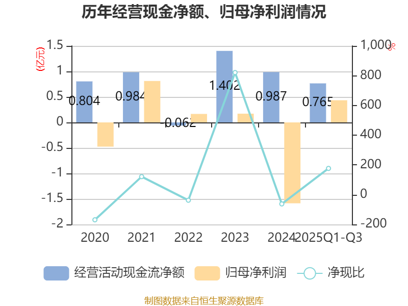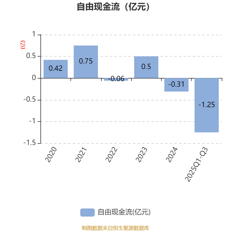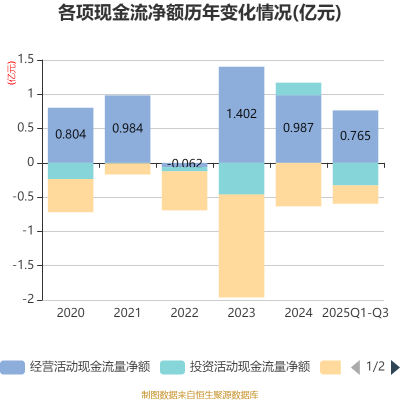 2025年前三季度,公司经营活动现金流净额为7648.78万元,同比增加1.07亿元;筹资活动现金流净额-2686.5万元,同比减少6858.64万元;投资活动现金流净额-3274.11万元,上年同期为1072.72万元。