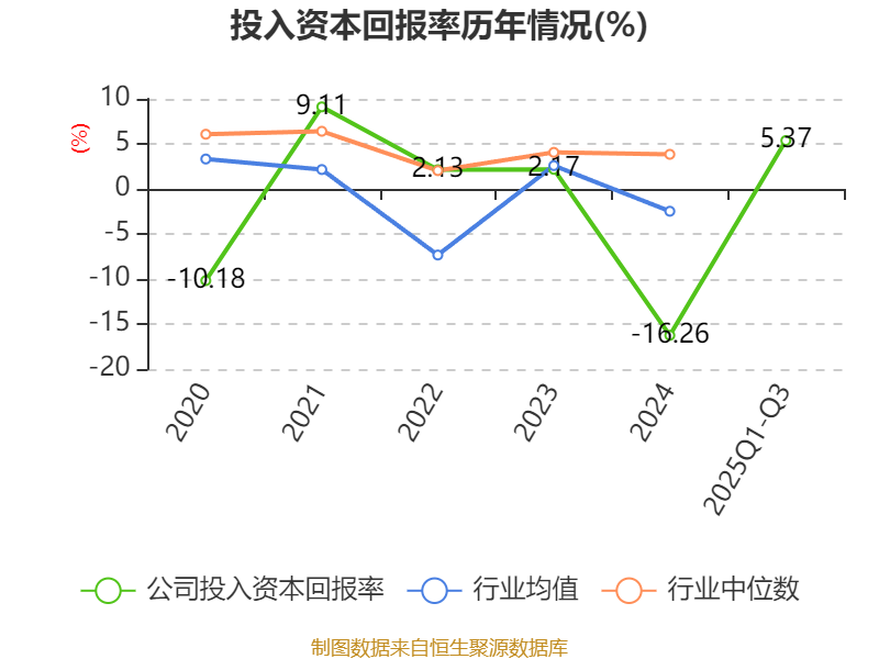 盈利能力方面, 2025年前三季度公司加权平均净资产收益率为6.59%,同比上升11.78个百分点。公司2025年前三季度投入资本回报率为5.37%,较上年同期上升9.97个百分点。