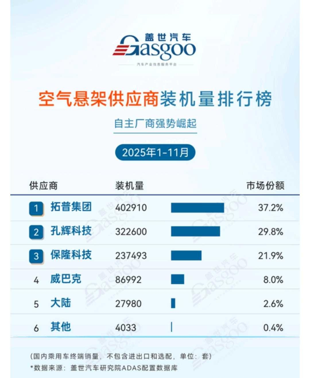 有一定滞后性。保隆说自己已经市占率第二了,仅次于拓普。
