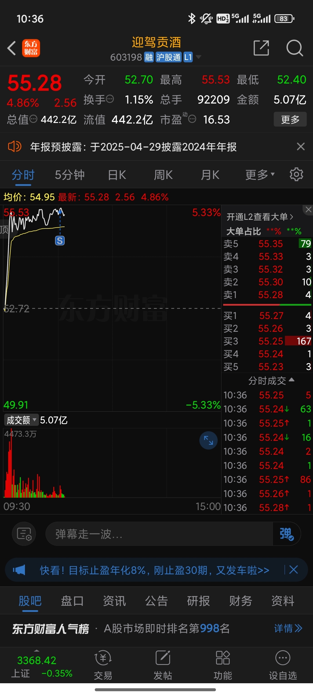 $迎驾贡酒(SH603198)$ 是了10.30--10.35没涨停就跑,下午再战,各位发财