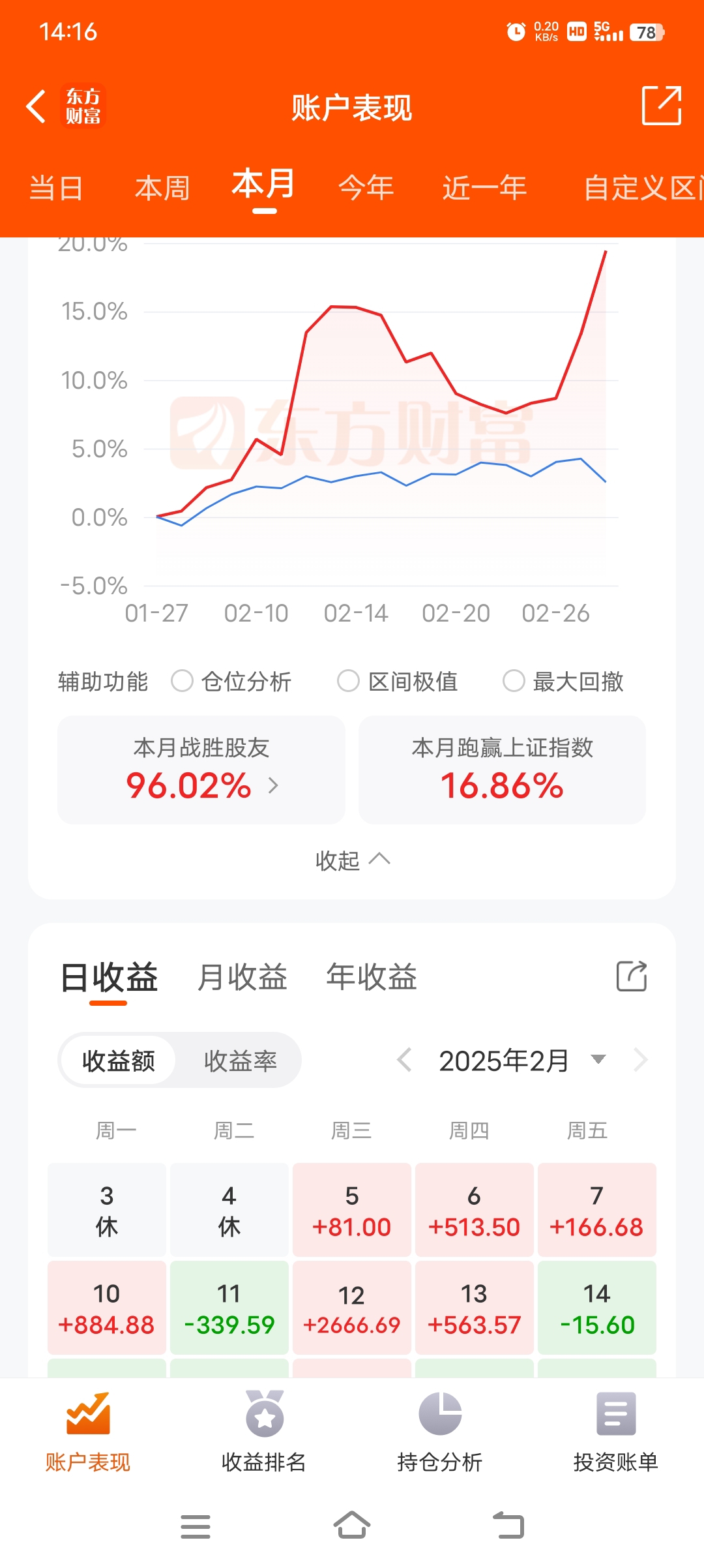 $迎驾贡酒(SH603198)$ 二月最后一天总算是把收益曲线扳回来了!中间那个大回撤是因为当时买了这个酒,后来割肉了。虽然在这酒上没亏多少,但是影响了那几天的操作!今天发个贴在这里时刻提醒自己不能做模式外的票!(发这贴跟迎驾好坏无关,本人也不持有该股)