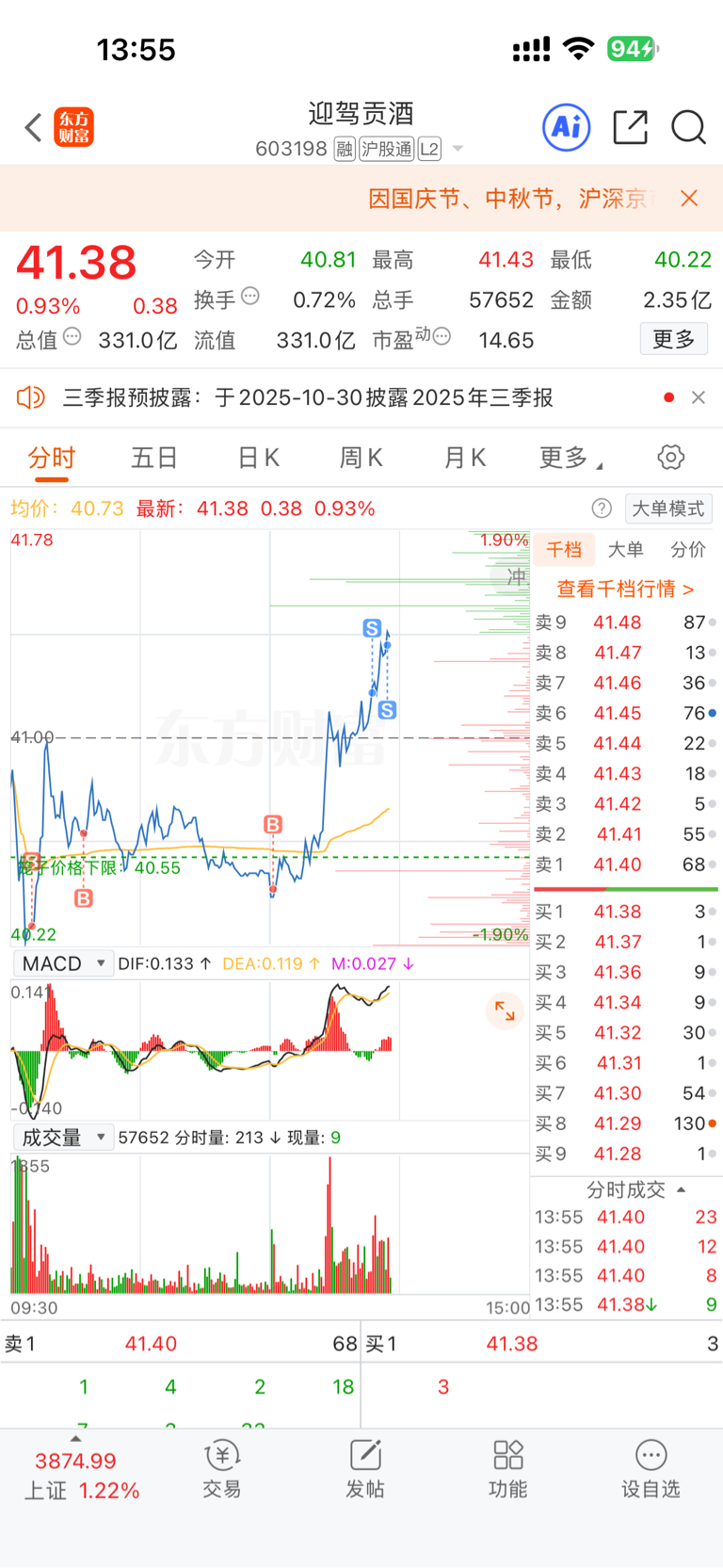 $迎驾贡酒(SH603198)$ 今天任务完成了,下班