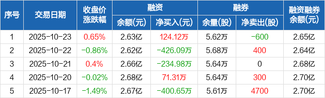 迎驾贡酒:融资净买入124.12万元,融资余额2.63亿元(10-23)
