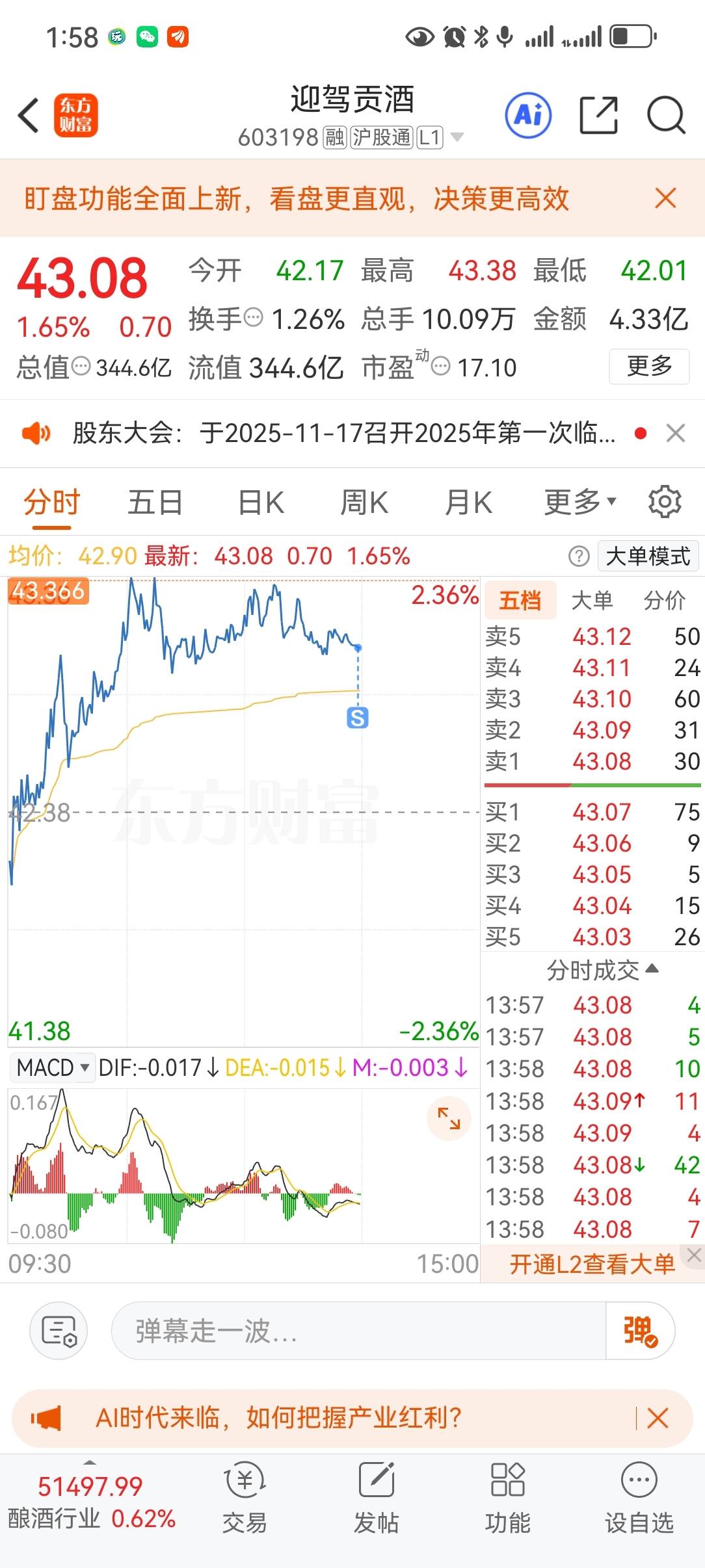 $迎驾贡酒(SH603198)$ 留发财,认亏