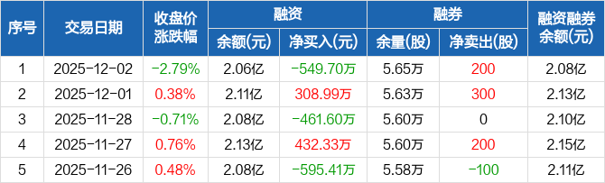 迎驾贡酒:融资净偿还549.7万元,融资余额2.06亿元(12-02)