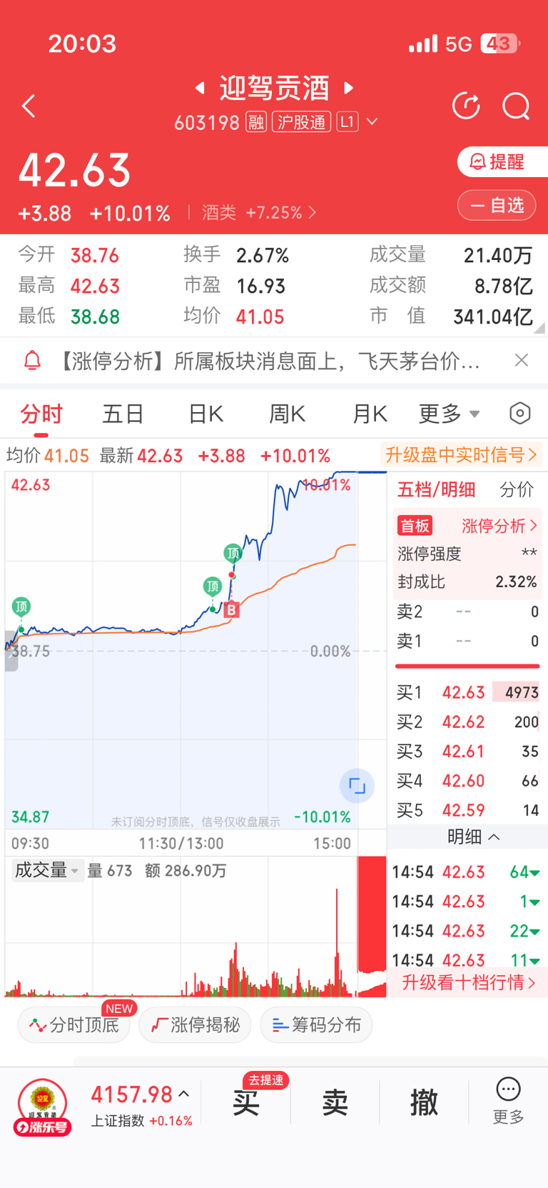 $迎驾贡酒(SH603198)$ 今天追进来了,明天怎么说各位大哥