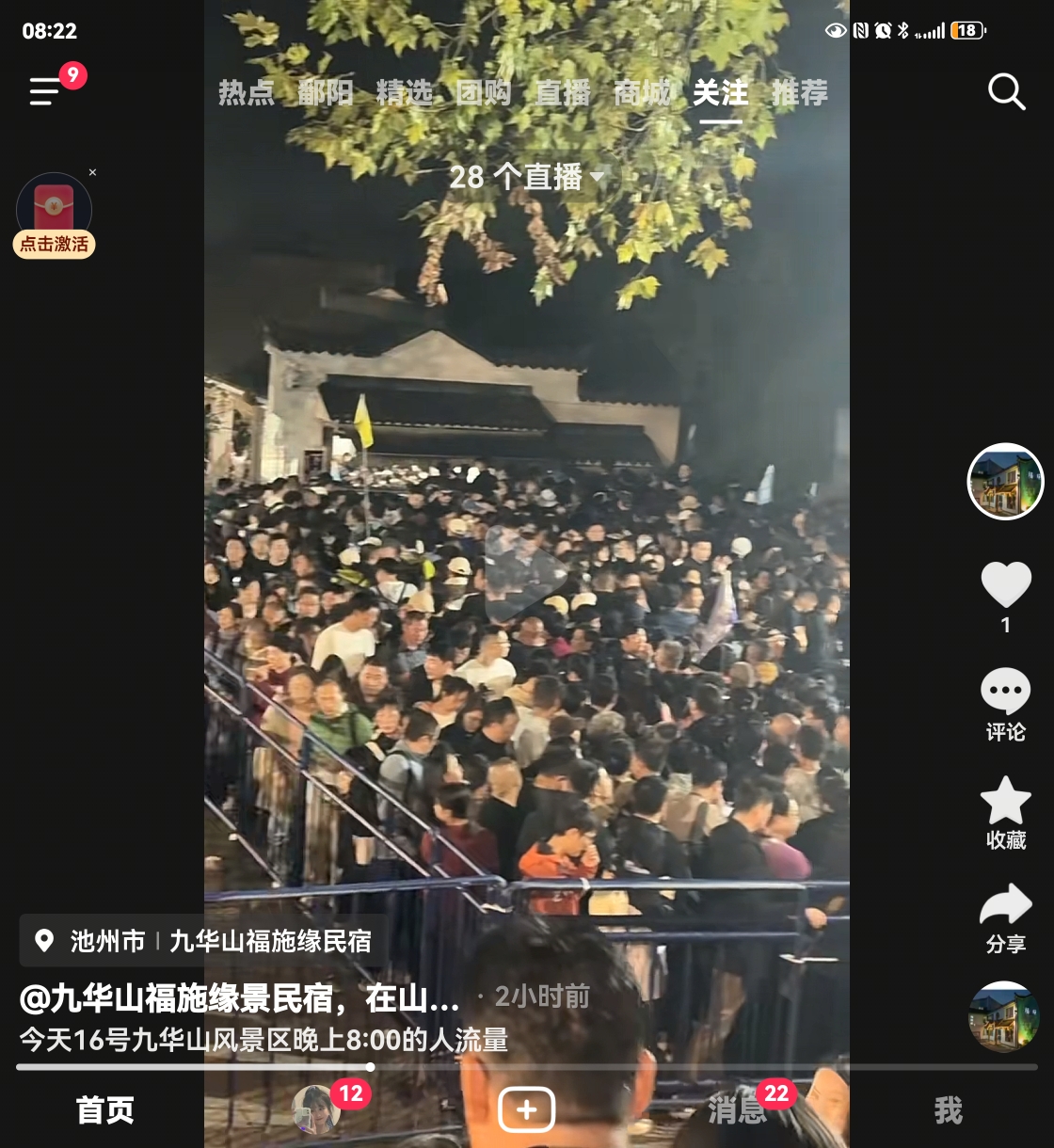 $九华旅游(SH603199)$ 九华山景区人山人海