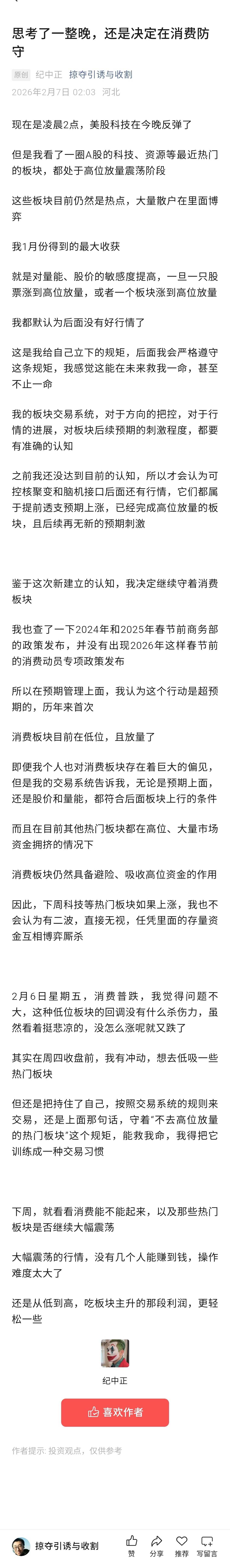 思考了整个晚上,还是决定在消费防守