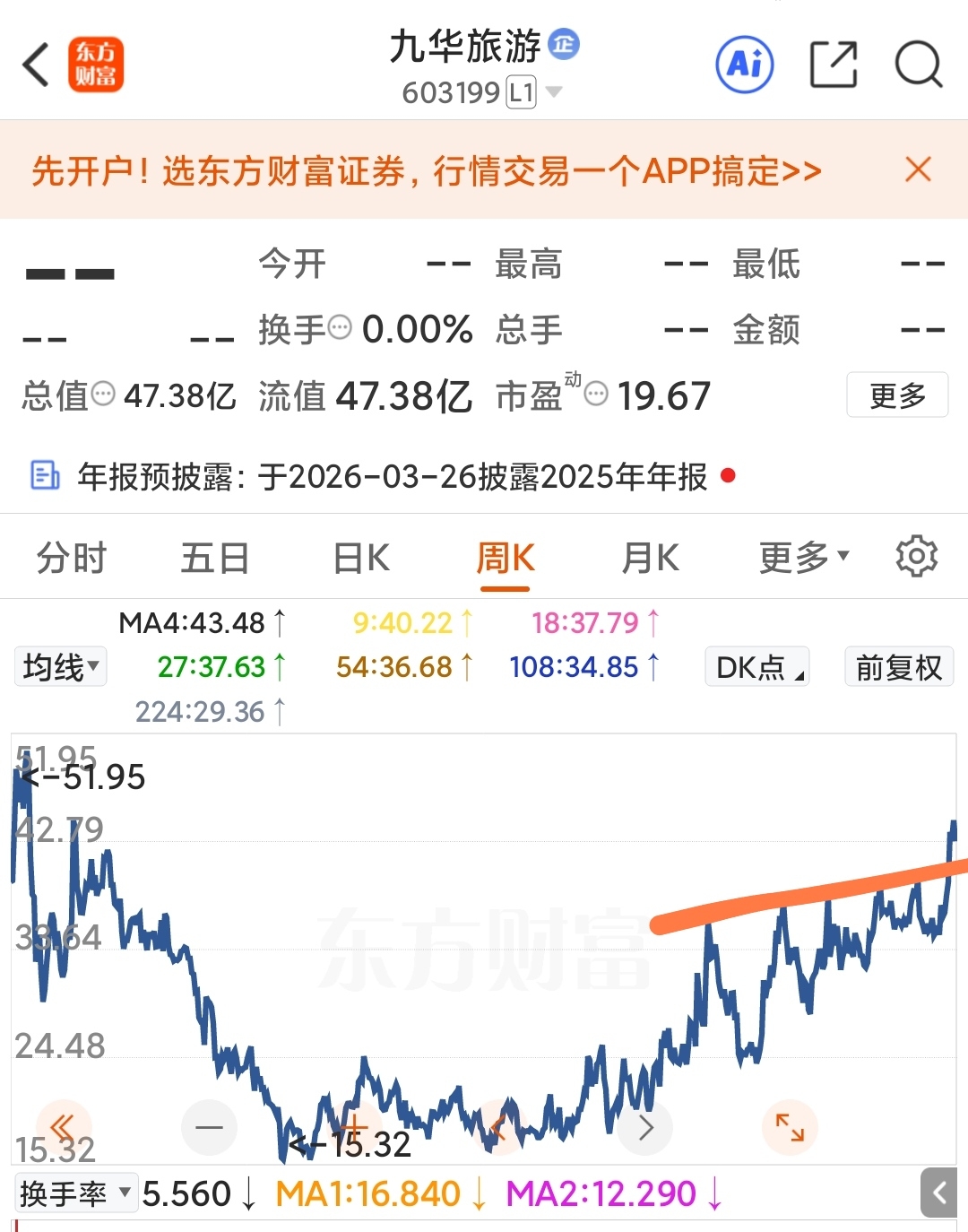 $九华旅游(SH603199)$ 九华旅游趋势在,逢低关注莫徘徊