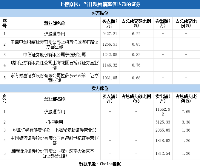 多主力现身龙虎榜,上海洗霸跌停(10-10)