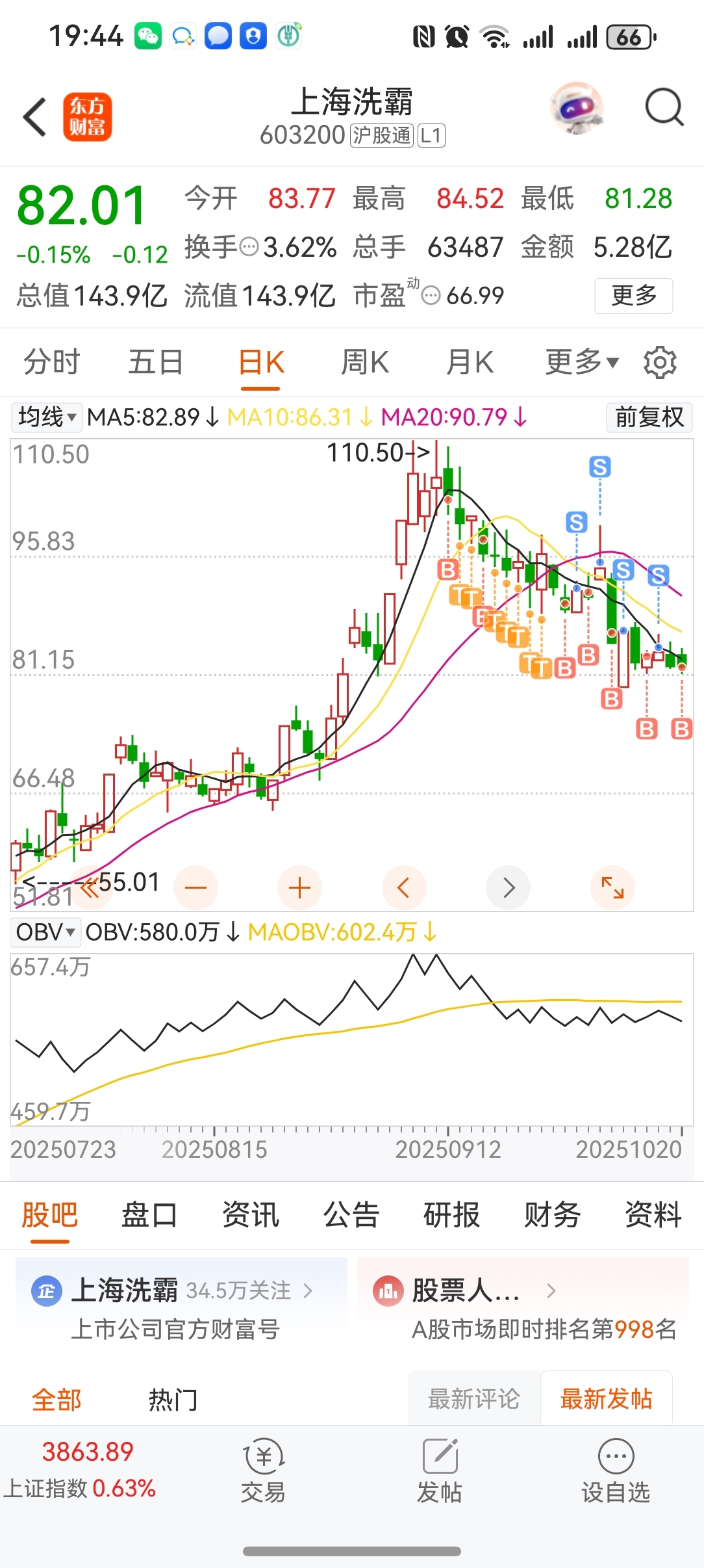 $上海洗霸(SH603200)$ 赶紧来个涨停或跌停吧!这样慢跌真受不了