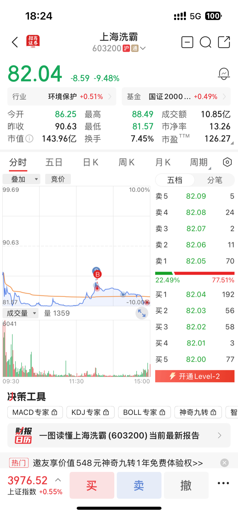 $上海洗霸(SH603200)$ 我从94的本都做到86了还能吃个跌停,一个月吃了俩个了我