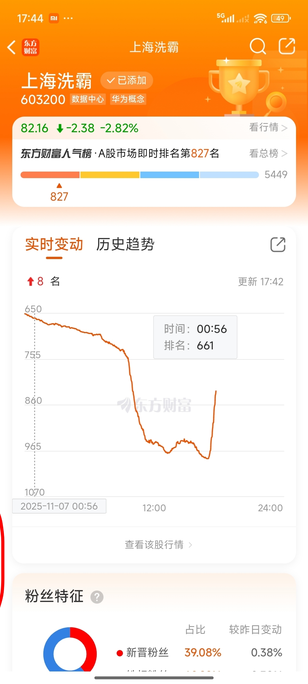 $上海洗霸(SH603200)$ 排名直线上升