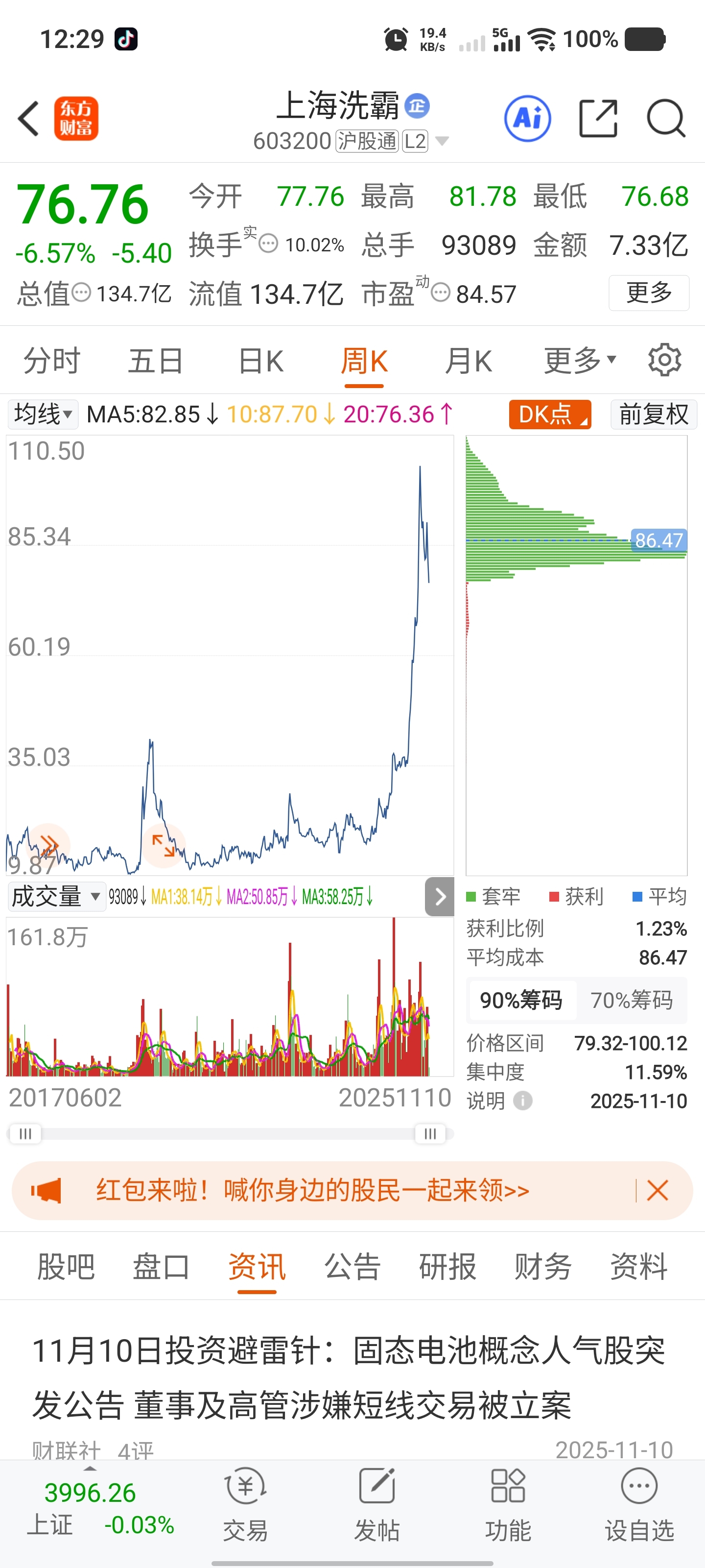 $上海洗霸(SH603200)$ 还要跌多少开始反转?