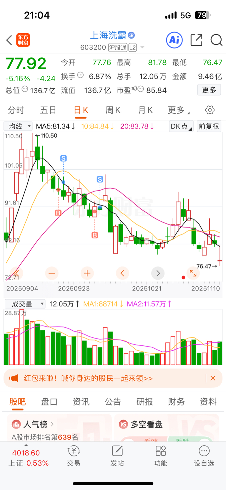 $上海洗霸(SH603200)$ 两笔操作现在看起来都是在玩火,逃过两劫
