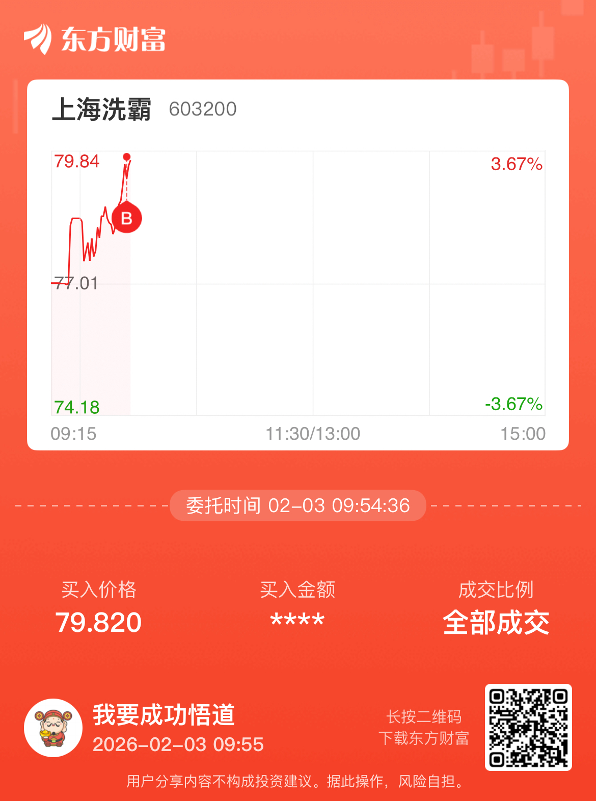 $上海洗霸(SH603200)$ 虚空买入,今天会挂山顶吗