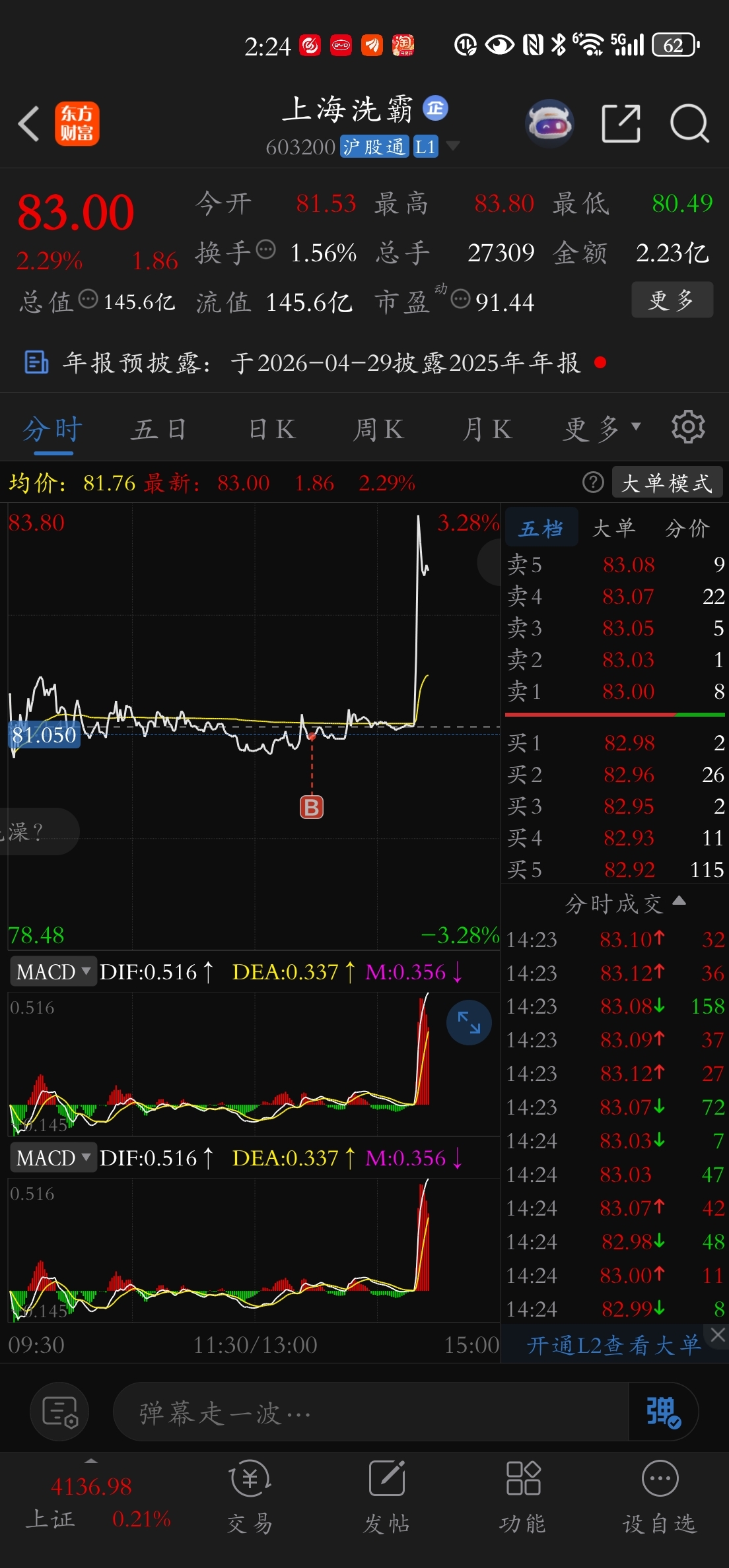 $上海洗霸(SH603200)$ 开仓,看年后表现!