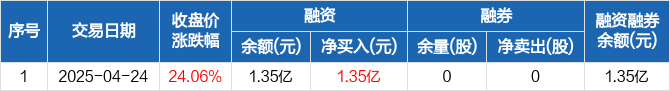 N天有:融资净买入1.35亿元,两市排名第一(04-24)