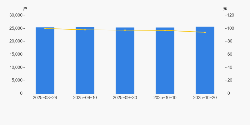 2025年8月29日至今,公司股东户数有所增长,区间涨幅为0.93%。2025年8月29日至2025年10月20日区间股价下降5.95%。