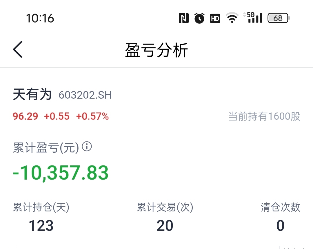 $天有为(SH603202)$ 没有动听的故事难有作为,价值投资第120个交易日,曾经有几天的时间让我获利了结,一次次的贪婪使我套牢,如果上天再给我一次机会。。。#实盘记录#