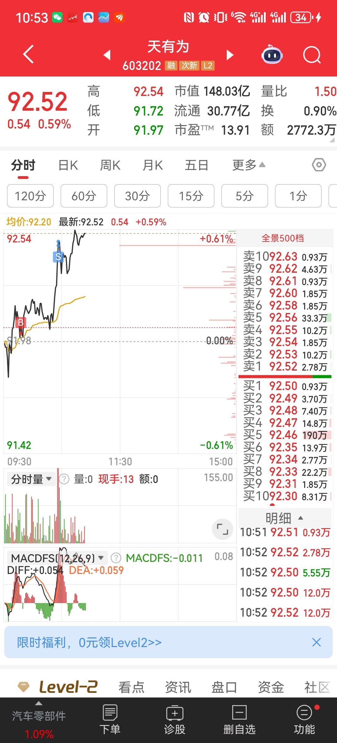 $天有为(SH603202)$ 不管了,先把成本做低,一天能T出0.5%已经烧高香