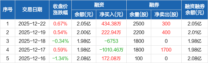 天有为:融资净买入434.38万元,融资余额2.05亿元(12-22)