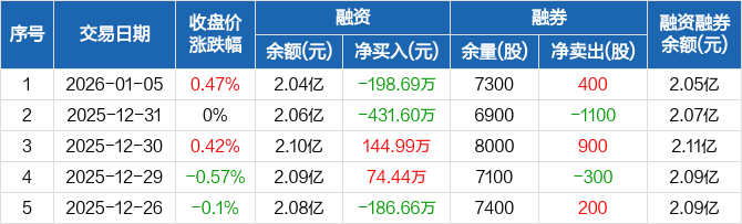 天有为:融资净偿还198.69万元,融资余额2.04亿元(01-05)