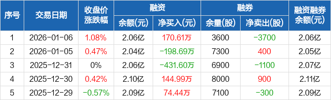 天有为:融资净买入170.61万元,融资余额2.06亿元(01-06)