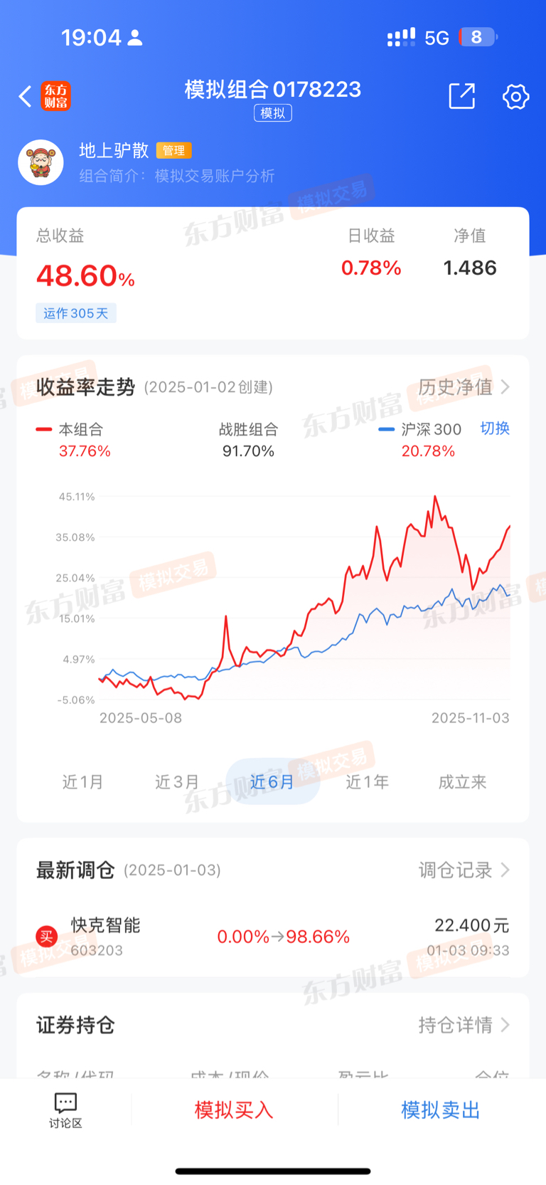$快克智能(SH603203)$ 那时候没钱用模拟全仓进去的 果然拿住就是有钱