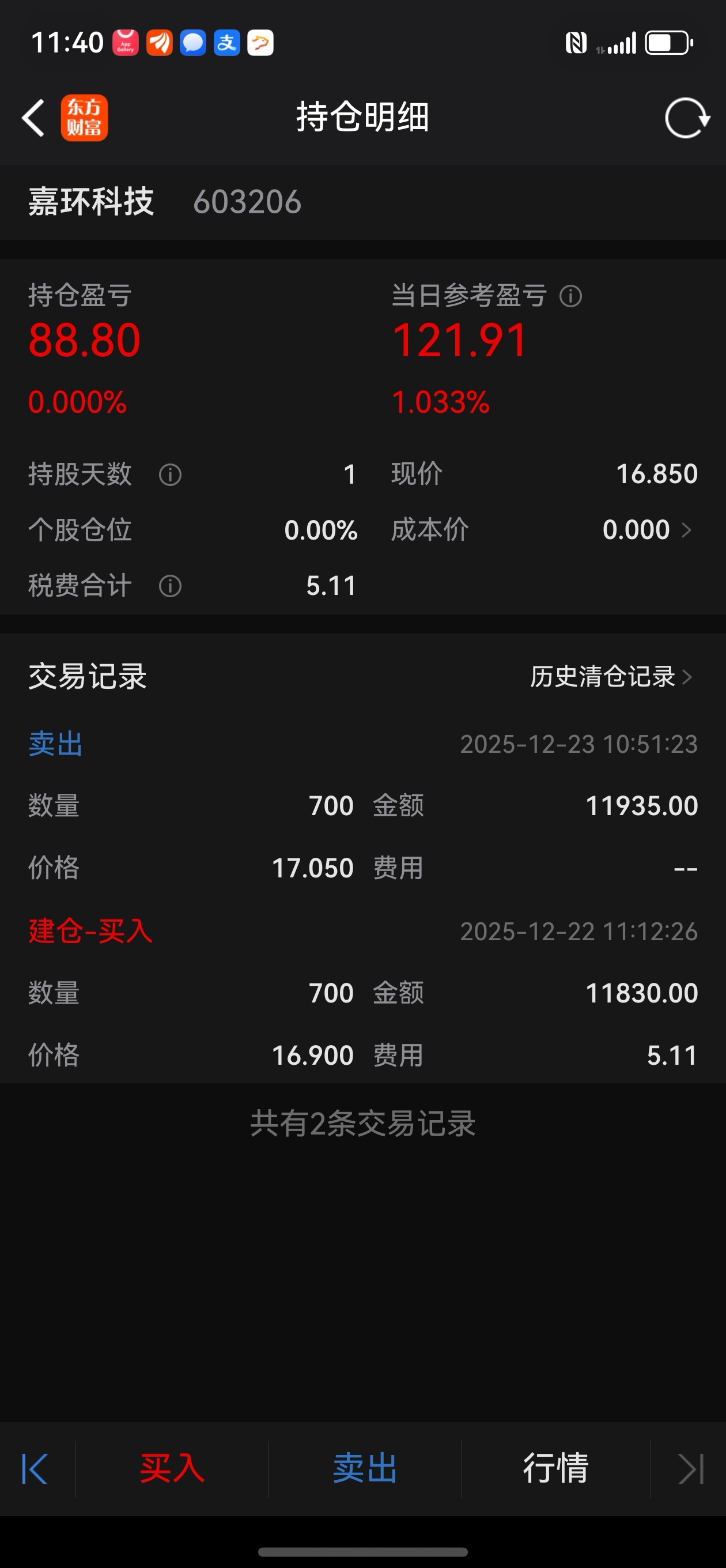 $嘉环科技(SH603206)$ 居然成交了,要不要买回来